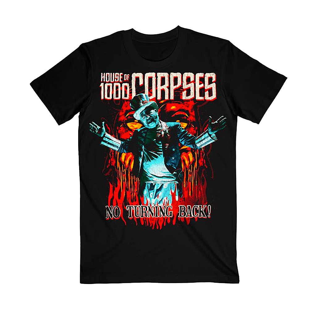 The No Turning Back Tee features a front screenprint design with artwork inspired by the legend Captain Spaulding.