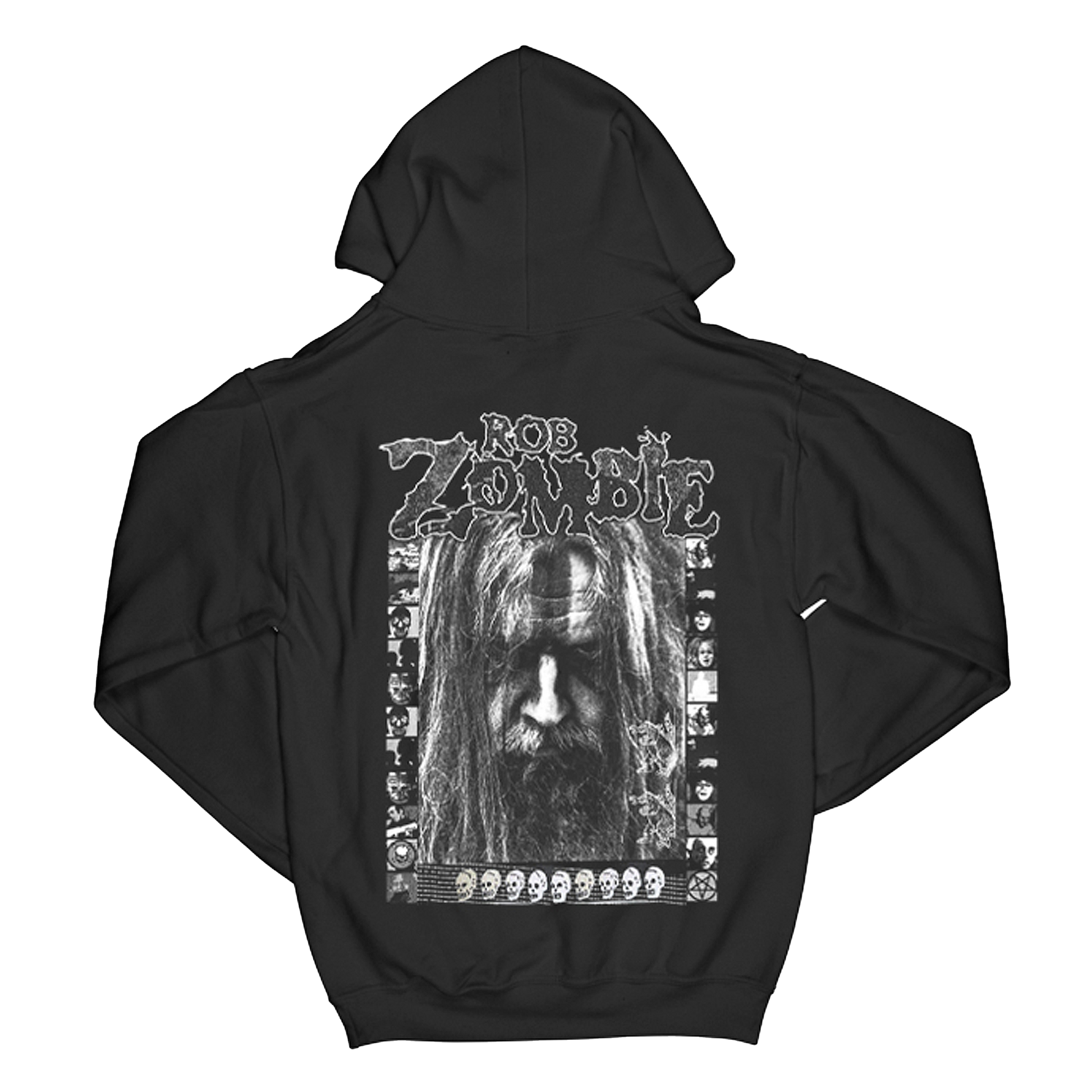 The Great Satan Pullover Hoodie features a drawstring hood, front pouch pocket, and screenprinted design on the front and back with artwork inspired by Rob Zombie's The Great Satan.